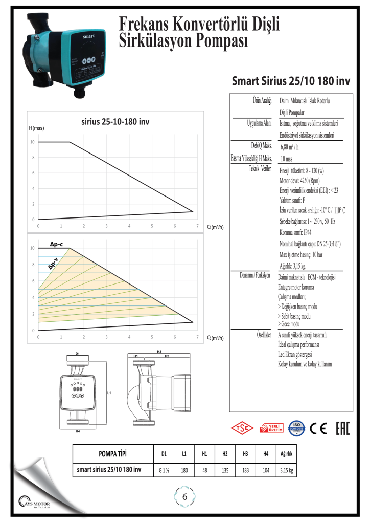Ürün Serisi: Smart Sirius 25/10 180 inv